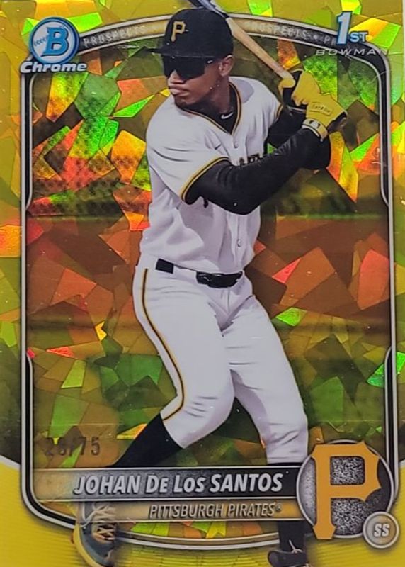 2025 BOWMAN CHROME JOHAN DE LOS SANTOS SAPPHIRE 1ST PROSPECT YELLOW REF. /75