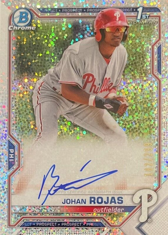 2021 Bowman Chrome Johan Rojas 1st RC Auto Speckle Refractor 162/299 Phillies