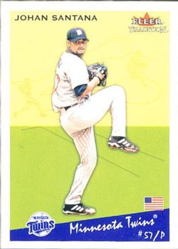 The Johan Santana 2002 Fleer Tradition Update #U134 Base card is 1 of 2 Johan Santana's card variations in the 2002 Fleer Tradition Update set being tracked by Sports Card Investor, including Glossy /200.
