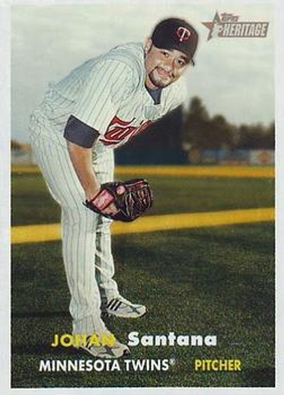 The Johan Santana 2006 Topps Heritage #367 Base card is 1 of 5 Johan Santana's card variations in the 2006 Topps Heritage set being tracked by Sports Card Investor, including Clubhouse Collection Relics, Chrome /1957, Chrome Refractor /557, and Chrome Black Refractor /57.