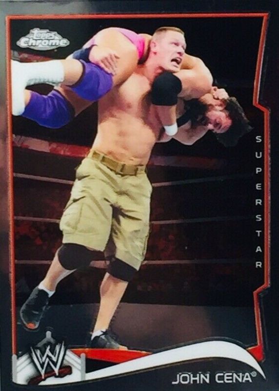 The John Cena 2014 Topps Chrome WWE #25 Base card in Raw condition has not changed in price in the last 30 days and was last sold for $1.98 .