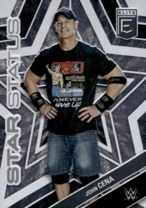 The John Cena 2023 Elite WWE #10 Star Status card is 1 of 78 John Cena's card variations in the 2023 Elite WWE set being tracked by Sports Card Investor, including Base, Green, Pink, Razzle Dazzle, and Red.