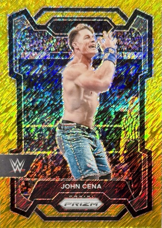 The John Cena 2024 Prizm WWE #156 Gold Shimmer /5 card in Raw condition has not changed in price in the last 30 days and was last sold for $225.00 .