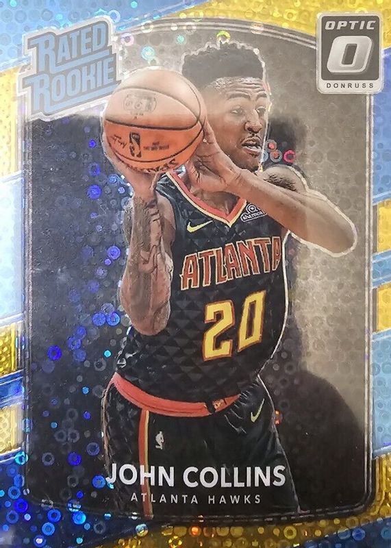 The John Collins 2017 Optic #182 Fast Break Gold /10 Rookie card in Raw condition has not changed in price in the last 30 days and was last sold for $93.56 .