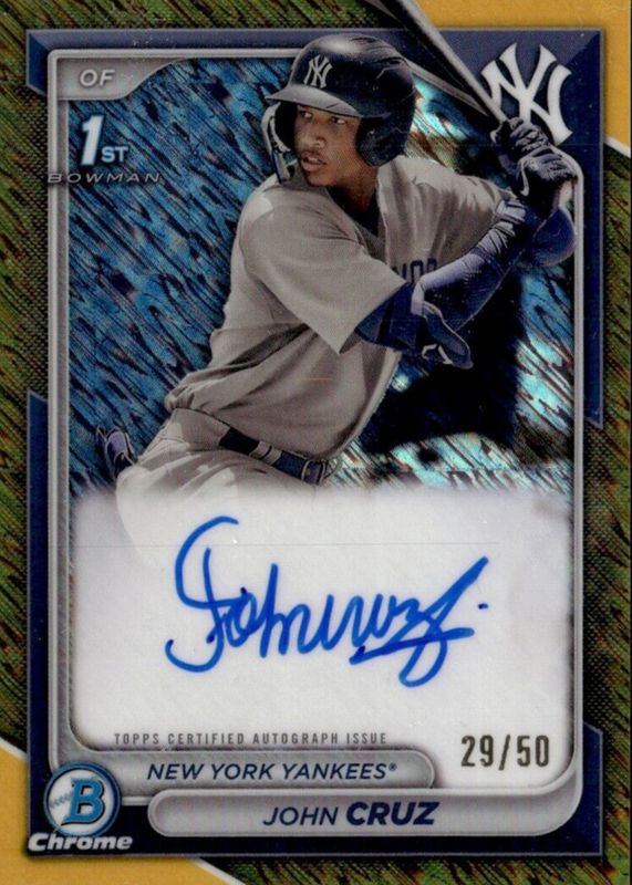 John Cruz 2024 Bowman Chrome 1st Bowman Auto Gold Shimmer 35/50 New York Yankees