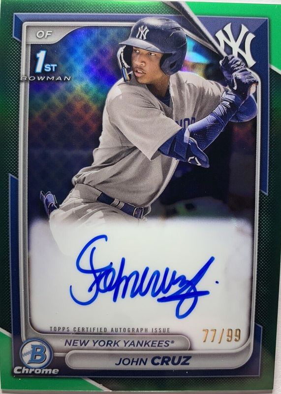 2024 Bowman Chrome JOHN CRUZ 1st Bowman Auto /99 Green #CPA-JCZ YANKEES M421