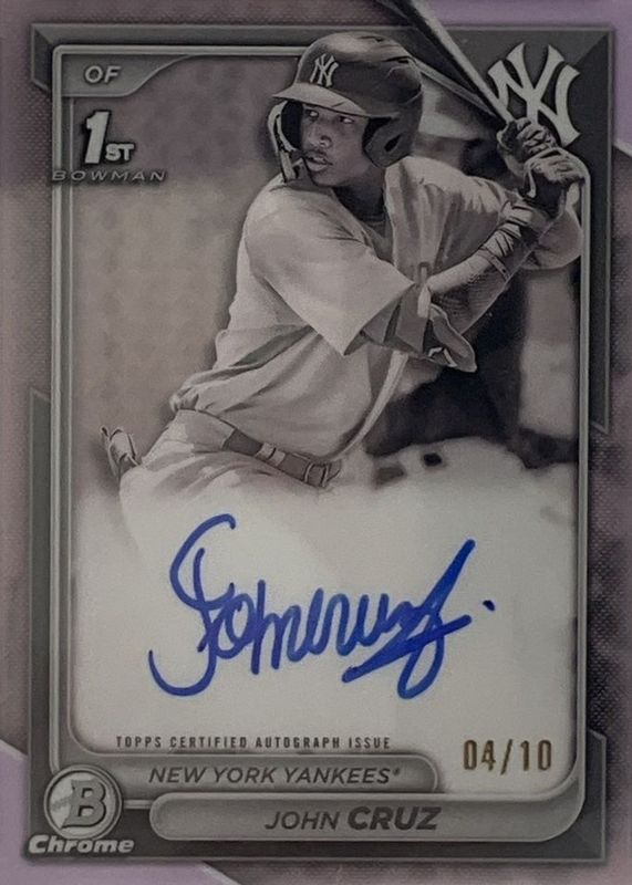 Auctions Ending Soon for John Cruz 2024 Bowman #CPA-JCZ Chrome Prospect Auto - Pearl Refractor /10 (1st) RAW