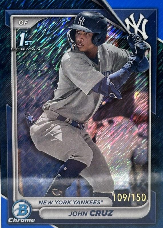 JOHN CRUZ 2024 BOWMAN CHROME 1ST BLUE SHIMMER YANKEES /150 Q0M-327