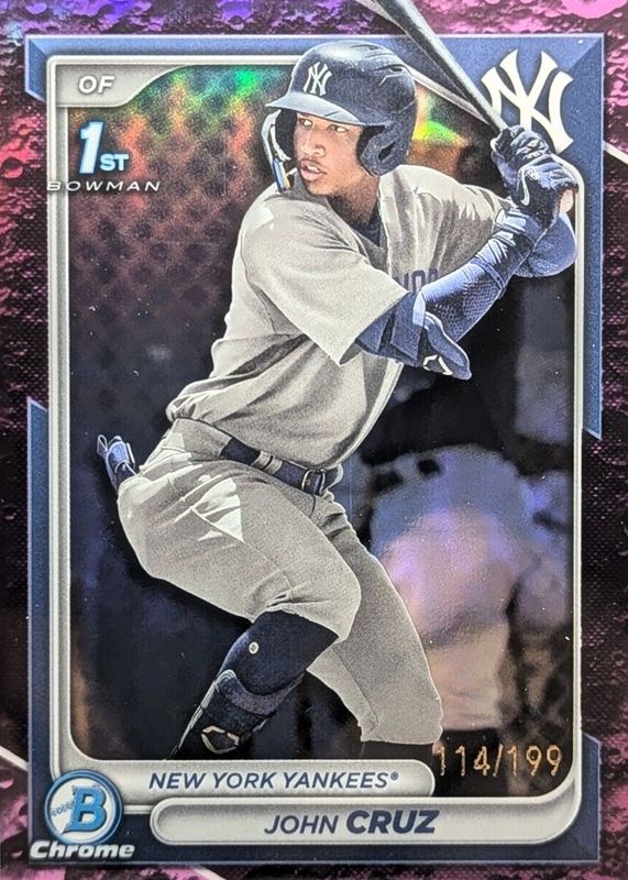 2024 Bowman Chrome JOHN CRUZ 1st Fuchsia Lunar #d /199 #BCP-77 YANKEES