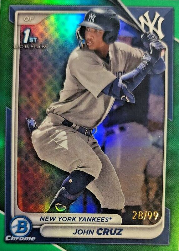 2024 Bowman Chrome 1st JOHN CRUZ Green Refractor /99 - BCP-77 - New York Yankees