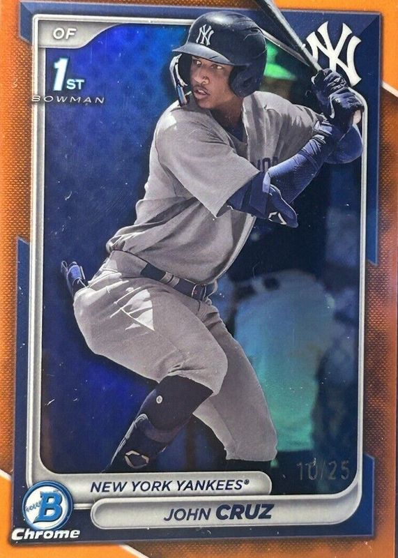 2024 Bowman Chrome Prospects 1st Bowman John Cruz Orange Refractor /25 Yankees