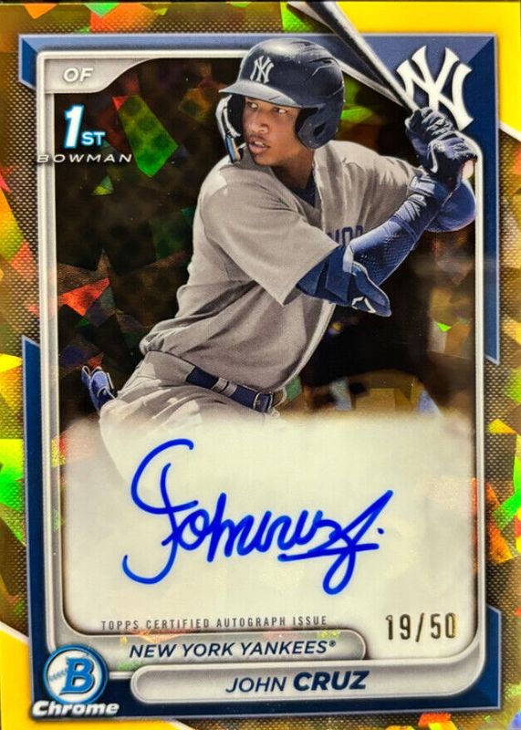 2024 Bowman Sapphire John Cruz Chrome Auto Gold 1st #30/50 Yankees