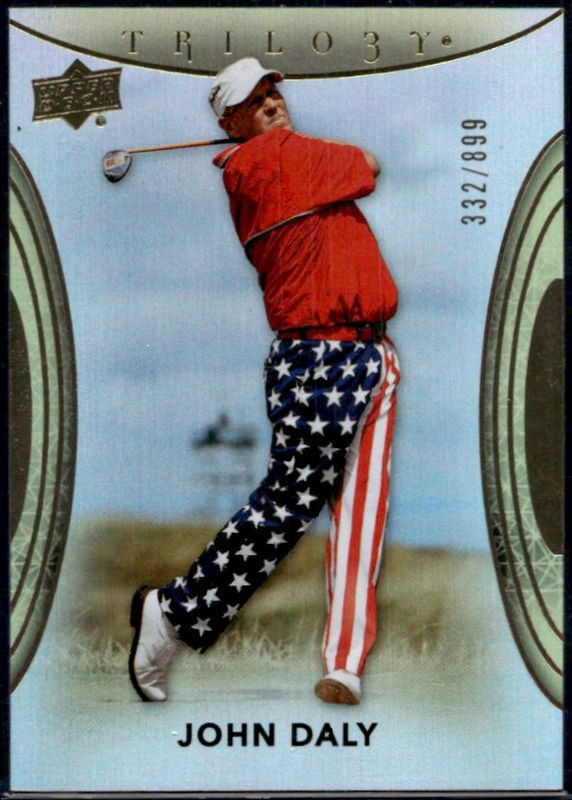 The John Daly 2024 Upper Deck Portfolio #7 Trilogy /899 card is 1 of 55 John Daly's card variations in the 2024 Upper Deck Portfolio set being tracked by Sports Card Investor, including Base, Black & White Portrait, Color Portraits, Wire Photos, and Allure.