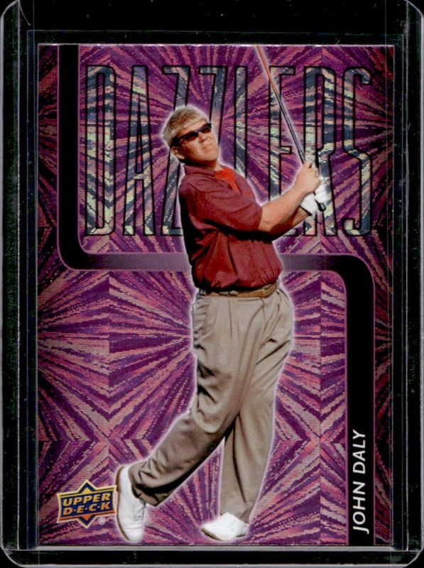 The John Daly 2026 Upper Deck #DZ-9 Dazzlers - Pink card is 1 of 29 John Daly's card variations in the 2026 Upper Deck set being tracked by Sports Card Investor, including Base, Green, Deluxe /250, Exclusives /100, and High Gloss /10.