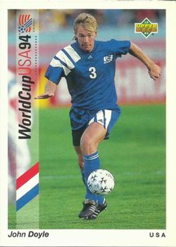 The John Doyle 1993 Upper Deck World Cup Preview (English/Spanish) #3 Base Rookie card is 1 of 3 John Doyle's card variations in the 1993 Upper Deck World Cup Preview (English/Spanish) set being tracked by Sports Card Investor, including Base, and USA Autographed.