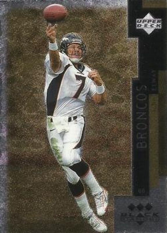 The John Elway 1998 Upper Deck Black Diamond #143 Triple card is 1 of 9 John Elway's card variations in the 1998 Upper Deck Black Diamond set being tracked by Sports Card Investor, including Base, Double, Quadruple, Premium Cut, and Premium Cut - Double.
