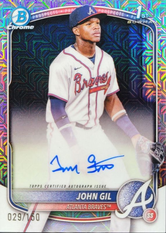 2025 Bowman Chrome John Gil Auto HTA Choice Refractor 1st #/150 Braves