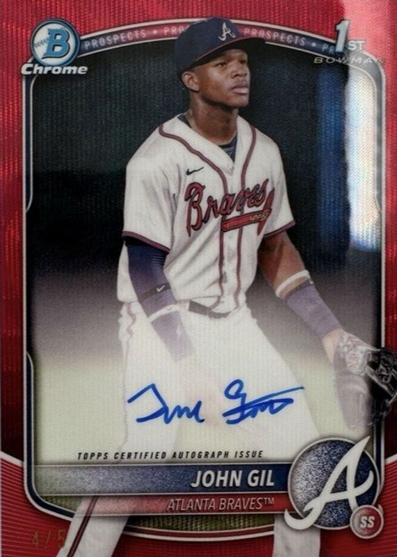 Auctions Ending Soon for John Gil 2025 Bowman Chrome #CPA-JG Prospect Auto - Red Wave Refractor /5 (1st) RAW