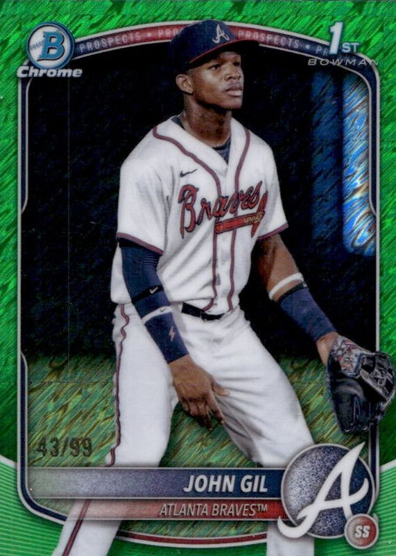 2025 Bowman Chrome John Gil Green Shimmer Refractor 1st #43/99 Braves