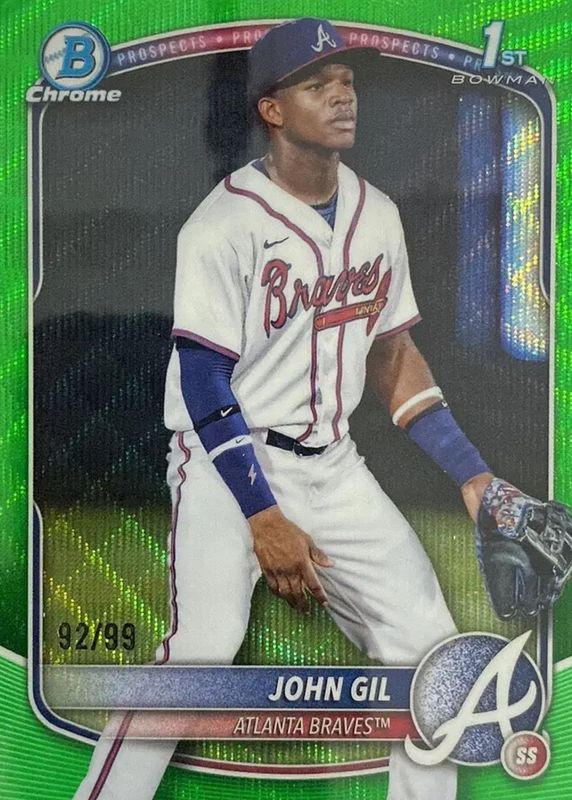 2025 Bowman Chrome John Gil Green Wave Refractor 1st Prospect #/99 Braves
