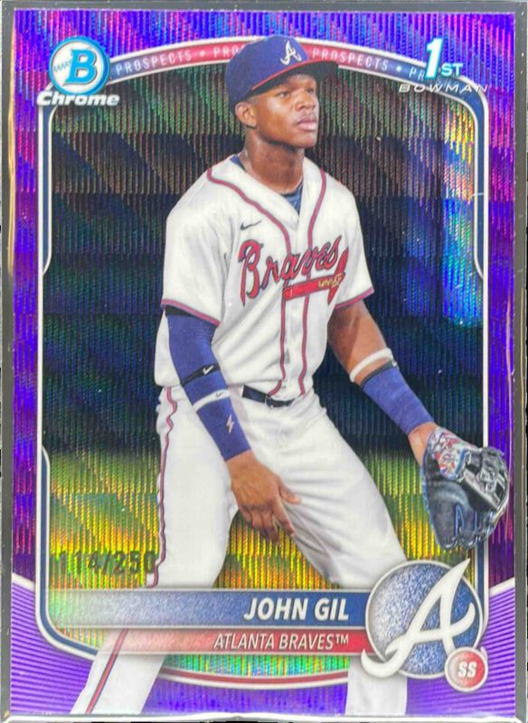 2025 Bowman Chrome John Gil Orange Wave Refractor 1st Prospect #/25 Braves