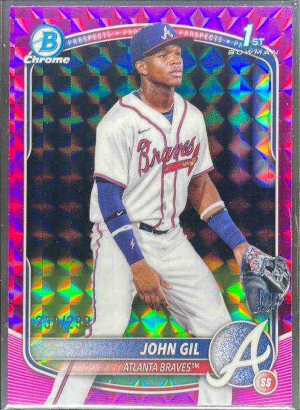 The John Gil 2025 Bowman Chrome #BCP-172 Prospects - Purple Wave Refractor /250 (1st) card in Raw condition has moved up $4.25 (+131%) in the last 30 days and was last sold for $7.50 .