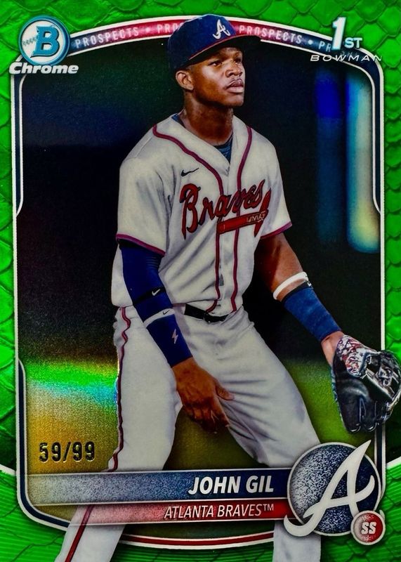 2025 Bowman Chrome John Gil Reptilian Green Refractor 1st Prospect #78/99 Braves