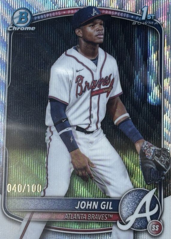 John Gil 51/100 - 2025 Bowman Chrome 1st Bowman Wave Refractor Atlanta Braves