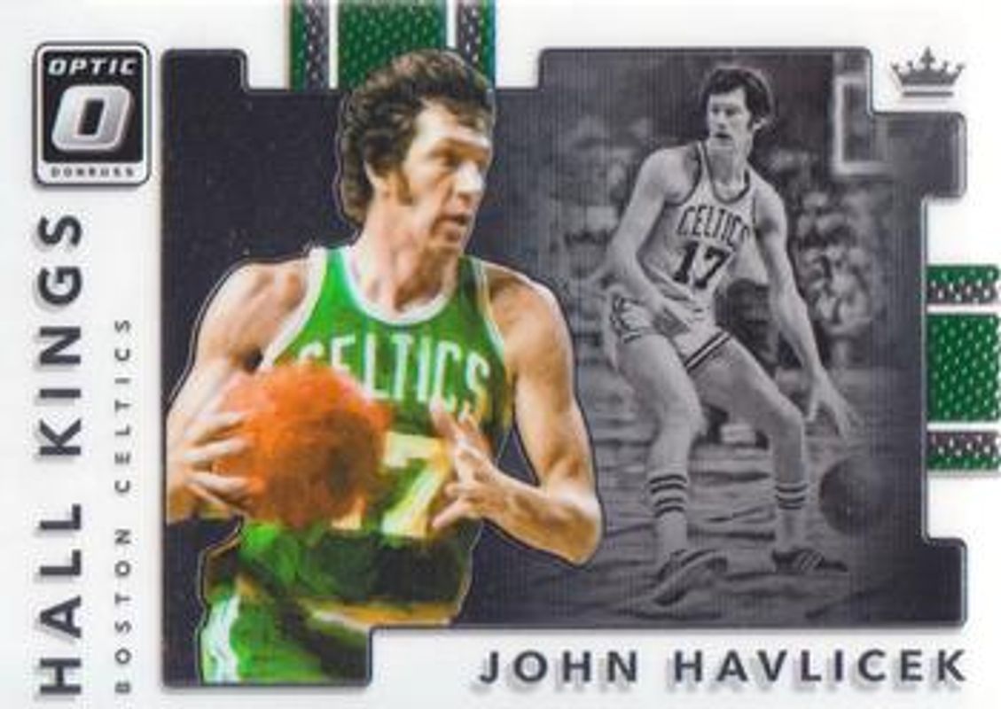 The John Havlicek 2017 Optic #6 Hall Kings card is 1 of 11 John Havlicek's card variations in the 2017 Optic set being tracked by Sports Card Investor, including Hall Kings - Holo, Hall Kings - Purple, Hall Kings - Lime Green /149, Hall Kings - Blue /85, and Hall Kings - Aqua /25.