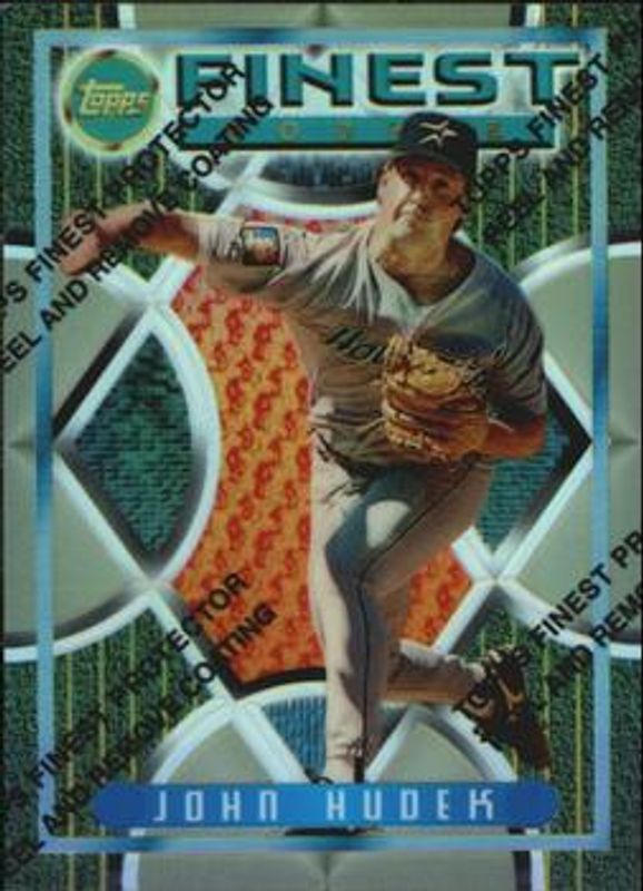 The John Hudek 1995 Topps Finest #9 Refractor card is 1 of 3 John Hudek's card variations in the 1995 Topps Finest set being tracked by Sports Card Investor, including Base, and Flame Throwers.