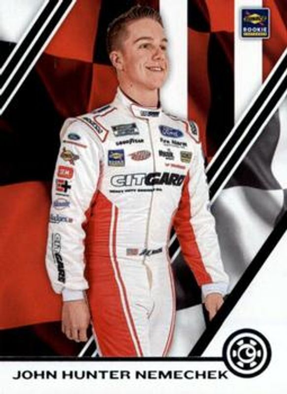 The John Hunter Nemechek 2020 Chronicles NASCAR #23 Base card is 1 of 86 John Hunter Nemechek's card variations in the 2020 Chronicles NASCAR set being tracked by Sports Card Investor, including Blue /199, Red /99, Purple /25, Gold /10, and Black /1.