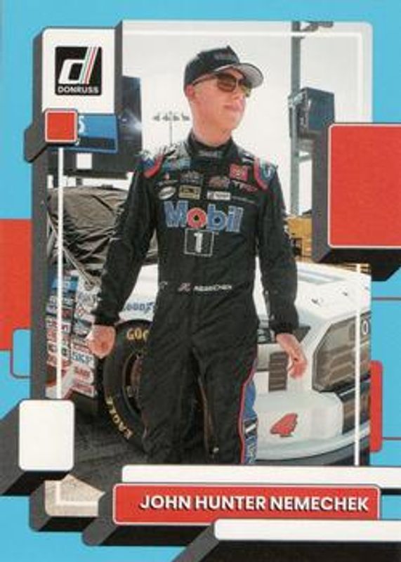 The John Hunter Nemechek 2023 Donruss NASCAR #86 Carolina Blue card is 1 of 49 John Hunter Nemechek's card variations in the 2023 Donruss NASCAR set being tracked by Sports Card Investor, including #86 Base, #171 Base, #171 Carolina Blue, #86 Lime Green, and #171 Lime Green.