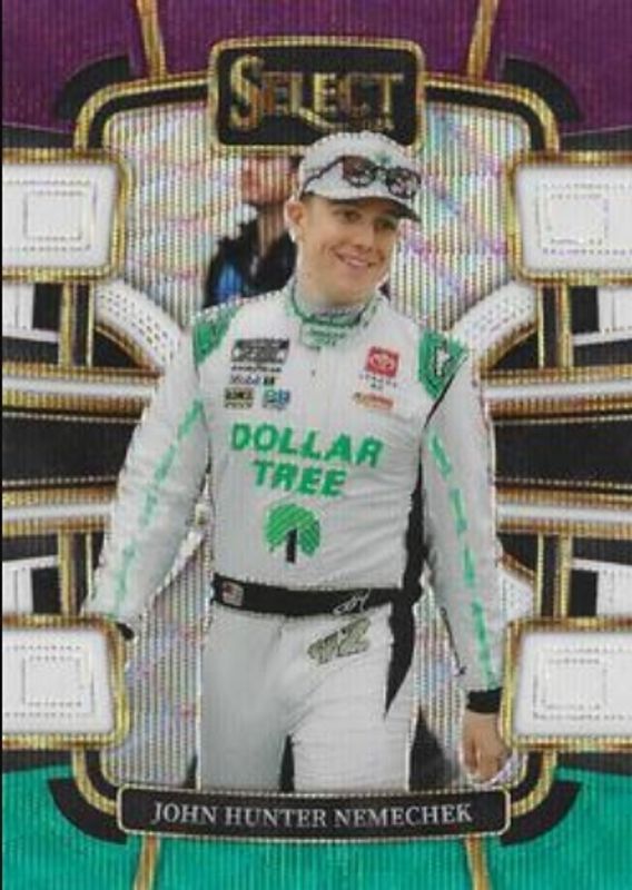 The John Hunter Nemechek 2024 Select NASCAR #22 Base Tri Color card is 1 of 62 John Hunter Nemechek's card variations in the 2024 Select NASCAR set being tracked by Sports Card Investor, including #122 Base, #222 Base, #22 Base, #222 Base Orange Flash, and #122 Base Orange Flash.