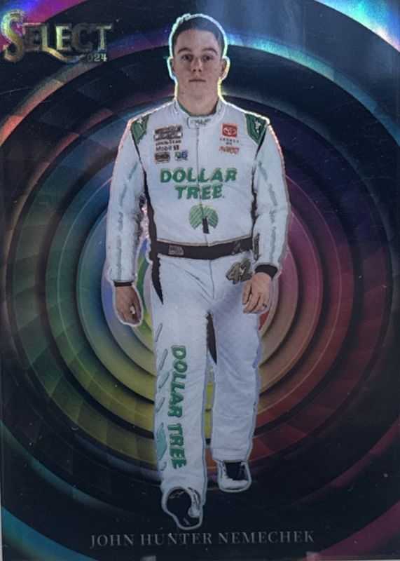 The John Hunter Nemechek 2024 Select NASCAR #8 Color Wheel /(SSP) card in Raw condition has not changed in price in the last 30 days and was last sold for $10.50 .