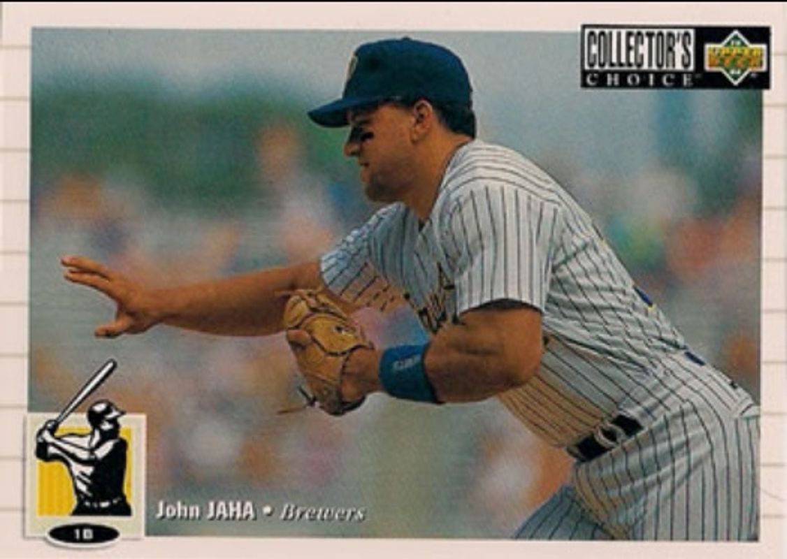 The John Jaha 1994 Upper Deck Collector's Choice #146 Base card is 1 of 3 John Jaha's card variations in the 1994 Upper Deck Collector's Choice set being tracked by Sports Card Investor, including Gold Signatures, and Silver Signatures.
