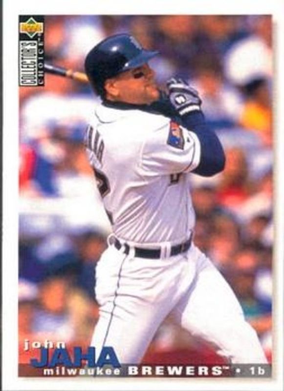 The John Jaha 1995 Upper Deck Collector's Choice #184 Base card is 1 of 3 John Jaha's card variations in the 1995 Upper Deck Collector's Choice set being tracked by Sports Card Investor, including Gold Signatures, and Silver Signatures.