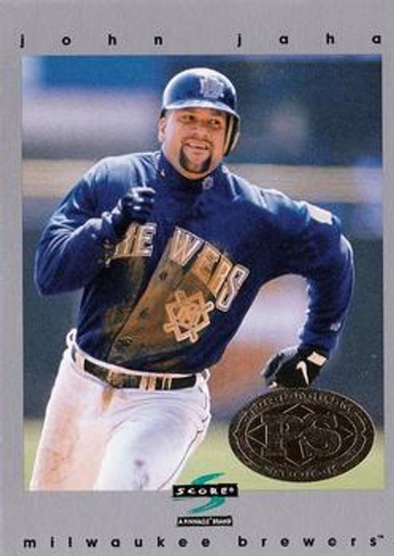 The John Jaha 1997 Score Premium Stock #68 Base card is 1 of 4 John Jaha's card variations in the 1997 Score Premium Stock set being tracked by Sports Card Investor, including Artist's Proof - Holofoil, Artist's Proof - White Border, and Showcase Series.