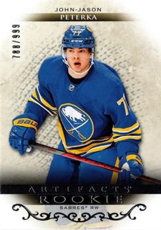 The John-Jason Peterka 2021 Upper Deck Artifacts #RED184 Base /999 Rookie card is 1 of 2 John-Jason Peterka's card variations in the 2021 Upper Deck Artifacts set being tracked by Sports Card Investor, including Emerald /99.