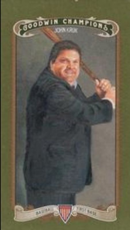 The John Kruk 2012 Upper Deck Goodwin Champions #109 Mini Green card is 1 of 11 John Kruk's card variations in the 2012 Upper Deck Goodwin Champions set being tracked by Sports Card Investor, including Base, Mini, Mini Foil, Mini Green Blank Backs, and Mini Foil Magician Red /12.