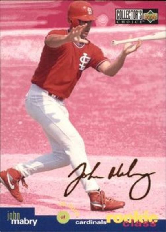 The John Mabry 1995 Upper Deck Collector's Choice #21 Gold Signatures Rookie card is 1 of 3 John Mabry's card variations in the 1995 Upper Deck Collector's Choice set being tracked by Sports Card Investor, including Base, and Silver Signatures.