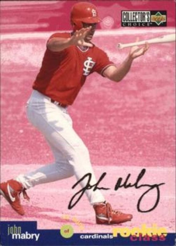 The John Mabry 1995 Upper Deck Collector's Choice #21 Silver Signatures Rookie card is 1 of 3 John Mabry's card variations in the 1995 Upper Deck Collector's Choice set being tracked by Sports Card Investor, including Base, and Gold Signatures.