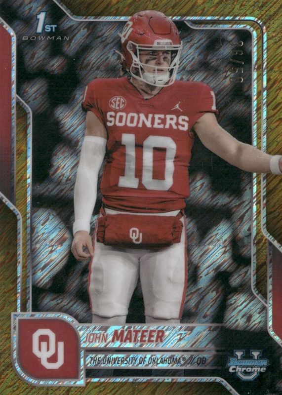2025 Bowman Chrome U John Mateer #1 1st Gold Shimmer /50 Oklahoma
