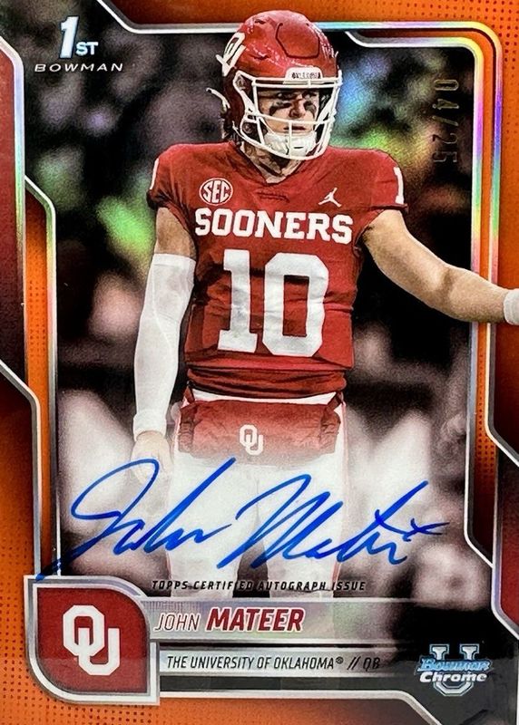John Mateer 2025 Bowman Chrome University #BCA-JM Prospect Auto - Orange Refractor /25 (1st) RAW Price Guide