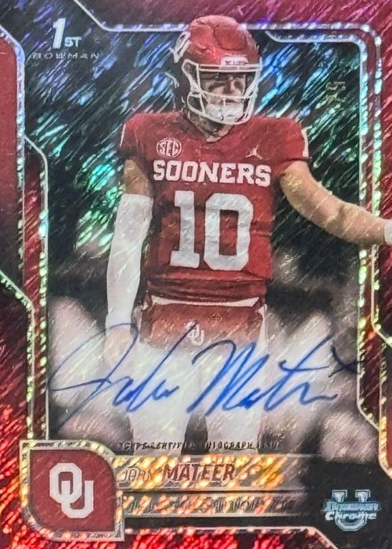 John Mateer 2025 Bowman Chrome University #BCA-JM Prospect Auto - Red Shimmer Refractor /5 (1st) RAW Price Guide