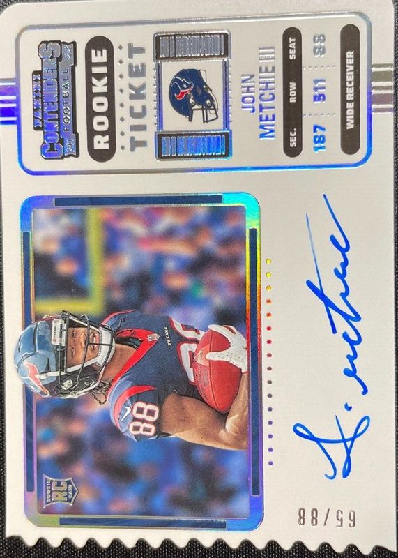 The John Metchie III 2022 Contenders #125 Rookie Ticket Auto Variation - Ticket Stub (/88) card in Raw condition has not changed in price in the last 30 days and was last sold for $12.27 .