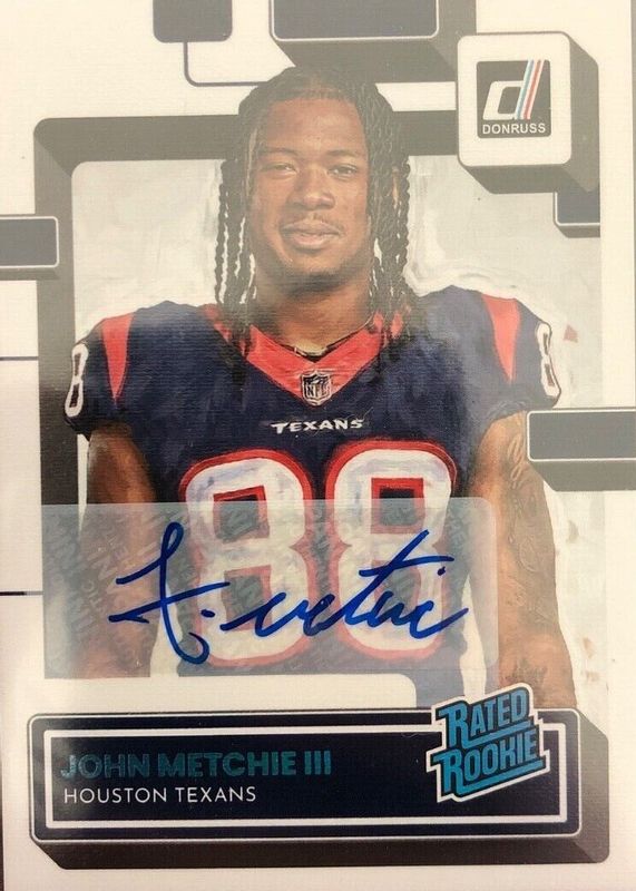 The John Metchie III 2022 Donruss #317 Rated Rookie Portrait Autographs /49 card in Raw condition has not changed in price in the last 30 days and was last sold for $28.00 .
