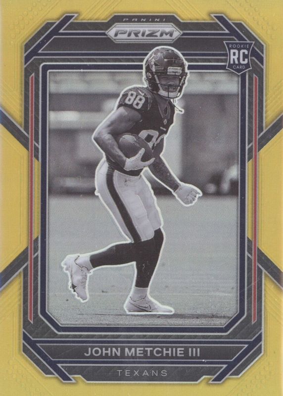 The John Metchie III 2022 Prizm #316 Variation - Gold /10 Rookie card in Raw condition has not changed in price in the last 30 days and was last sold for $30.00 .