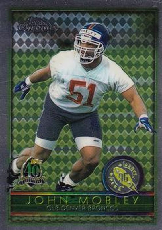 The John Mobley 1996 Topps Chrome #160 Base Rookie card is 1 of 2 John Mobley's card variations in the 1996 Topps Chrome set being tracked by Sports Card Investor, including Refractor.