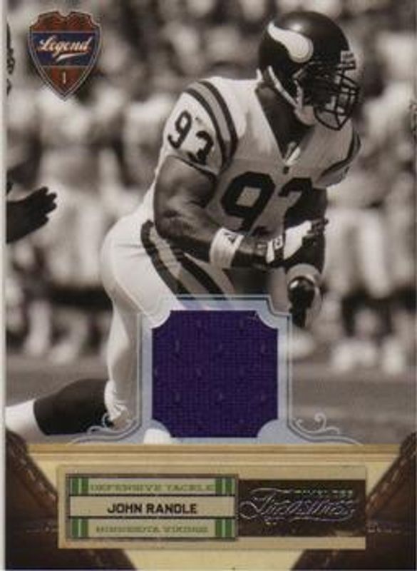 The John Randle 2011 Timeless Treasures #117 Jerseys /99 card is 1 of 8 John Randle's card variations in the 2011 Timeless Treasures set being tracked by Sports Card Investor, including Base /299, Silver /25, Gold /10, Platinum /1, and Jerseys - Prime /25.