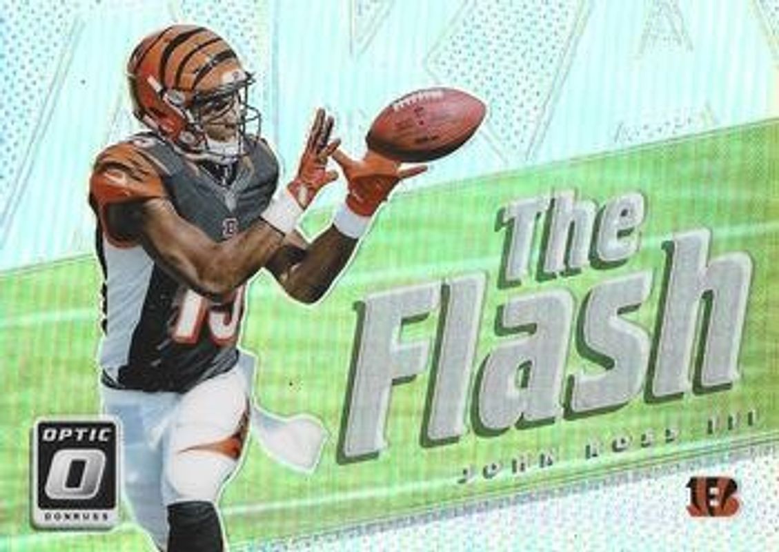 The John Ross III 2017 Optic #28 AKA Rookie card is 1 of 60 John Ross III's card variations in the 2017 Optic set being tracked by Sports Card Investor, including Base, Bronze, Holo, Lime, and Pink.